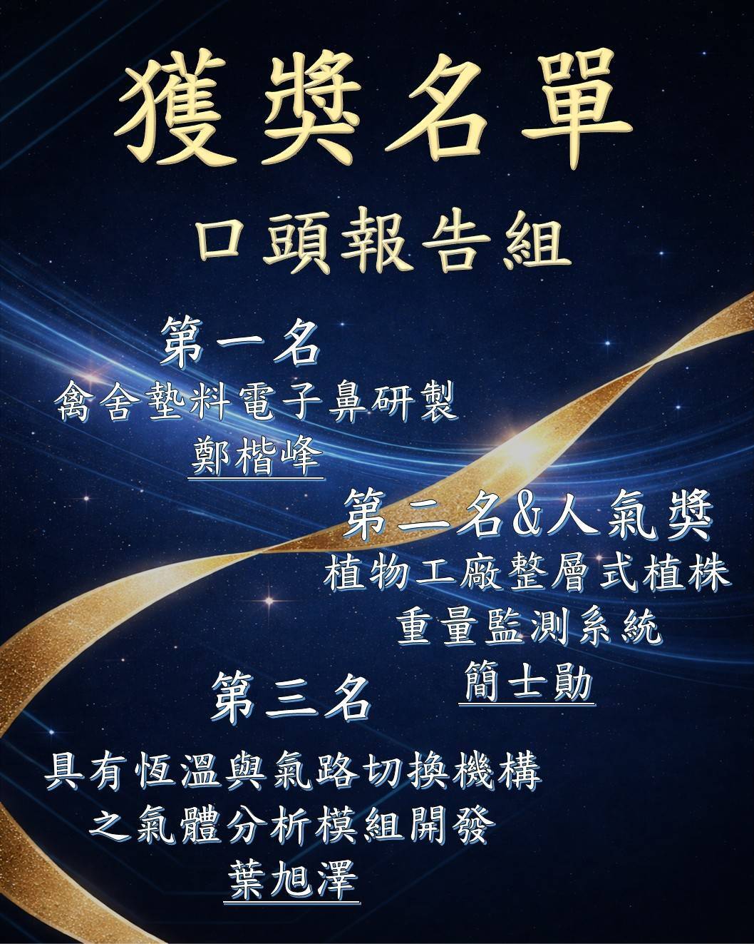 生機系114學年度專題發表獲獎同學名單